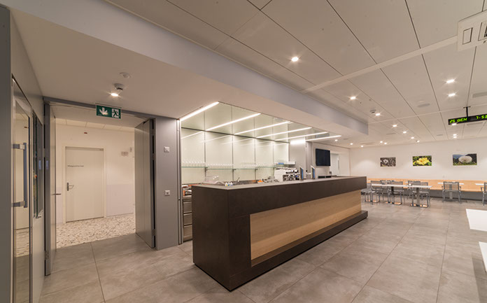 Risanamento e ampliamento zona entrata principale, uffici, caffetteria, sala fumatori